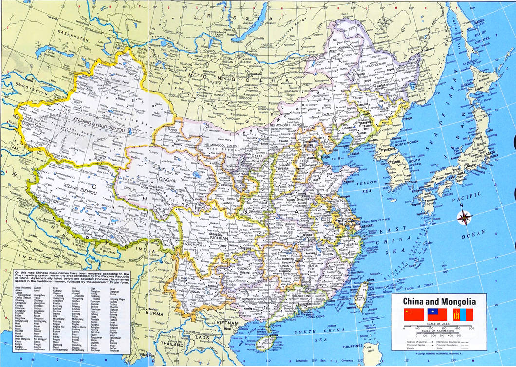 Detailed Map of China and Mongolia (Modern) by Cameron J Nunley on